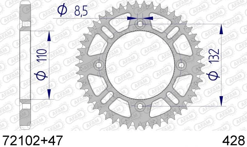 Een aluminium 47 tands AFAM achtertandwiel. De aluminium tandwielen van AFAM zijn compleet vervaardigd uit 7075 aluminium met een T6 oppervlakte verharding. Deze tandwielen zijn perfect ter vervanging van de OEM tandwielen.