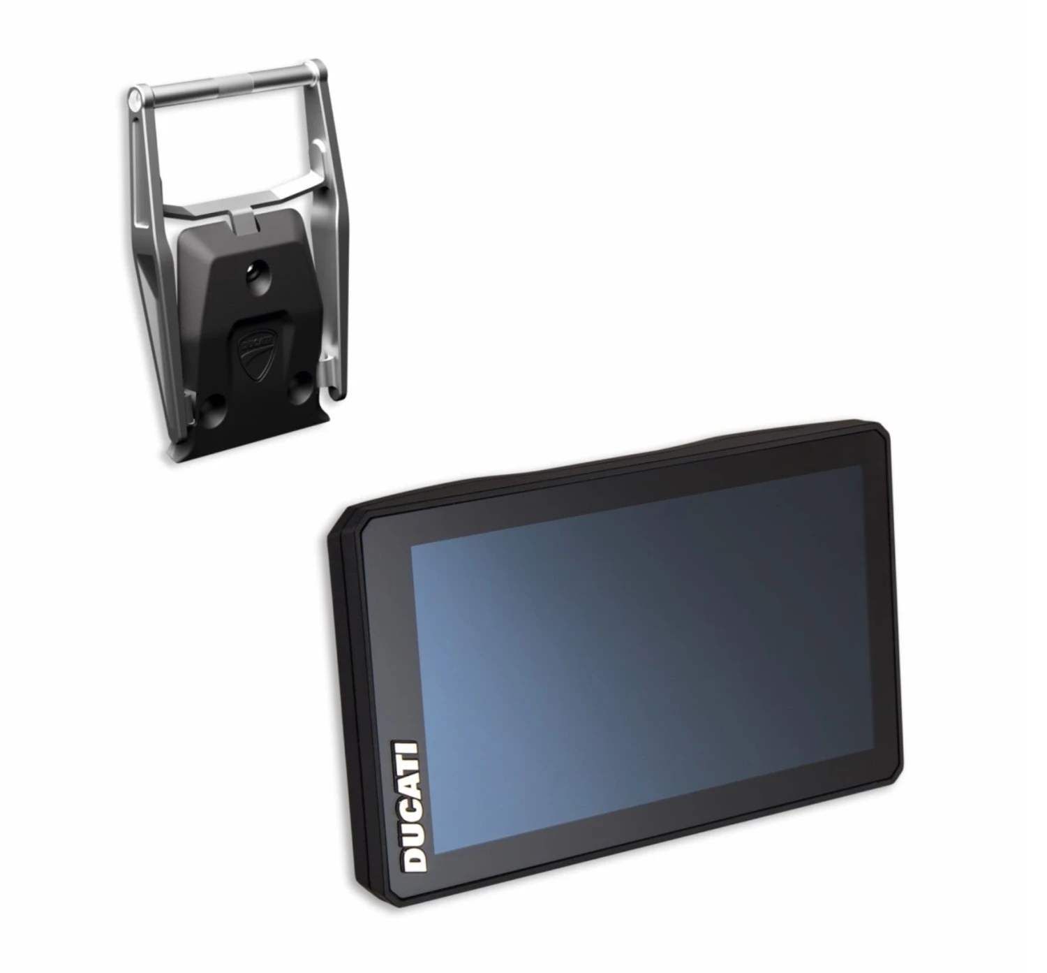 Accessoires ontworpen om volledig te voldoen aan de behoeften van de meest veeleisende rijders. Uitstekend zicht dankzij de voorinstelling voor ergonomische installatie op de fiets door een hoge steun en een groot 5,5” kleuren TFT HD multitouch scherm, gemaakt van glas, met hoge helderheid en witte achtergrondverlichting. De handschoenvriendelijke gebruikersinterface maakt het gebruik eenvoudig. De behuizing is stevig, IPX7 waterdicht en bestand tegen UV-stralen. Met de ingebouwde Bluetooth®-module kan de rijder handsfree bellen (indien verbonden met de smartphone, via compatibele oortelefoons en helmen) en naar muziek luisteren via de interne mp3-speler. Met de trackopslagfunctie kunnen de afgelegde routes worden opgeslagen en naar een pc worden geëxporteerd, gearchiveerd of draadloos met andere gebruikers worden gedeeld. Bovendien maakt de Group Track-functie het mogelijk om routes in realtime te delen (via Smartphone Link). De functies “Round Trip”, “TrackBack®” en “Percorsi avventurosi” maken deze uitrusting compleet, om te reizen op routes vol bochten en hellingen